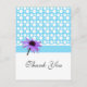 carta de agradecimiento, puntos azul claro y flor margarita morada.