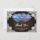 Tarjeta De Agradecimiento Purple Blue Rustic Wood Lace Floral Wedding
