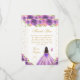 Esta elegante y glamorosa tarjeta de agradecimiento de dieciséis años presenta una hermosa princesa con el pelo oscuro y la piel oscura en un vestido de bolas moradas. El texto combina el guión manuscrito y las fuentes sans serif modernas para un aspecto elegante y sofisticado. Los arreglos florales, las mariposas y los confeti dorados crean una perfecta mezcla de rústico y moda. Gráficos de www.etsy.com/uk/shop/SunflowerDayLove