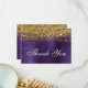 Tarjeta De Agradecimiento Purpurina de oro Relieve metalizado violeta oscuro