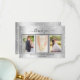 Agrega 3 de tus propias fotos y una nota de agradecimiento. Un falso fondo metálico plateado con el texto y el marco negros, finos destellos purpurinas. El texto: Gracias en la parte delantera y sus nombres en la parte trasera están escritos con un elegante guión con letras a mano con guiones.