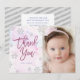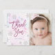 Digamos gracias con esta elegante y moda tarjeta fotográfica, que presenta tipografía de escritura de moda en purpurina rosa con falsos copos de nieve purpurina plata. Añade tu foto y texto, con espacio para un mensaje adicional en la parte posterior.