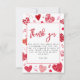 Estas encantadoras tarjetas de agradecimiento para una fiesta de bebé, diseñadas para coordinar con la invitación de baby shower 'querido'. El diseño presenta corazones de acuarela dulces de diferentes patrones y tamaños con un mensaje de agradecimiento elegante.