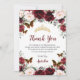 Tarjeta De Agradecimiento Quinceañera Burgundy Rubor Floral Butterflies