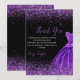 Tarjeta De Agradecimiento Quinceanera Dark Purple Dress Faux Glitter
