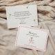 Celebremos el estilo de la futura novia con nuestra increíble ducha de novia gracias a las tarjetas! El punto fuerte de la decoración es un bonito cristal martiní pintado a mano, adornado con un suave arco rosa que simboliza la mezcla de sofisticación y diversión. El original tipo de letra manuscrito exuda un toque personal, haciendo que cada carta se sienta como una apreciada nota de un amigo cercano. Mientras tanto, el delicado arco rosa sobre el cristal de martini le da un toque de color y feminidad, capturando a la perfección la esencia de una ducha de novias.