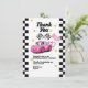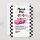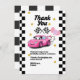 ¡Envíe gracias de alta velocidad con la tarjeta de agradecimiento de los chicas con temática de carreras! Con acentos rosas y banderas a cuadros, es perfecto para carreras de autos o fiestas de cumpleaños "rápidas".