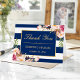 Tarjeta De Agradecimiento Rayas Azules Navales Doradas Florales Agradecimien
