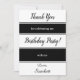 Esta elegante tarjeta de agradecimiento en blanco y negro es perfecta para un cumpleaños moderno. El diseño es sencillo y presenta una caligrafía elegante en blanco y negro sobre un fondo rayado en blanco y negro.