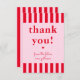 Tarjeta De Agradecimiento Rayas Rojas y Rosadas Retro de la futura Sra
