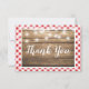 Tarjeta de nota de agradecimiento a Red Gingham Check Plaid Rustic Wood Event Shower