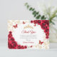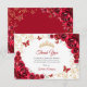 Red gold Quinceanera celebration thank you card. Features, script font, butterflies, watercolor roses and tiara. Perfect for an elegant princess style glam celebration. Personalize with your own details.