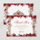 Tarjeta De Agradecimiento Red Golden Tiara Floral Quinceañera