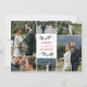 Photo collage thank you wedding card to say thank you and wish your wedding guests merry Christmas. Personalize by uploading six of your own wonderful wedding photos to the front of the card. On the back, you can write a thank you message and wishes for the holidays and new year by hand above a mistletoe divider, with love in a swirly script, and then your names printed. Christmas themed wedding thank you card with mistletoe twig illustrations and Merry and Married in red fonts.