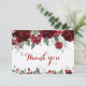 Una invitación de boda floral de acuarela de lujo Tarjeta de agradecimiento que incluye peonías rojas profundas con acuarela pintadas y pulverizaciones de eucalipto plateado.