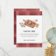 Baby Q BBQ Baby Shower tema, Cute retro country acuarela color rojo plaid gingham backyard barbacoa al aire libre. rústico estilo moderno invitación a la ducha de bebé, decoración de fiesta de ducha de bebé, colección de suministros de fiesta. Puede usar la palabra personalizar a través de "personalizar la plantilla".