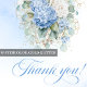 Boho wedding thank you card with blue hydrangea watercolor flowers and eucalyptus greenery, professionally printed by Zazzle on premium cardstock with crisp detail, rich color, and a smooth elegant finish.