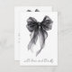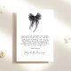 Tarjeta de agradecimiento elegante para despedida de soltera con una hermosa ilustración en acuarela de un lazo coqueto negro y "con amor y gracias" en una tipografía chic. En el reverso, personaliza tu mensaje de agradecimiento con una letra moderna simple y agrega tu nombre en una tipografía que semeja una firma, o déjalo en blanco para una nota manuscrita.