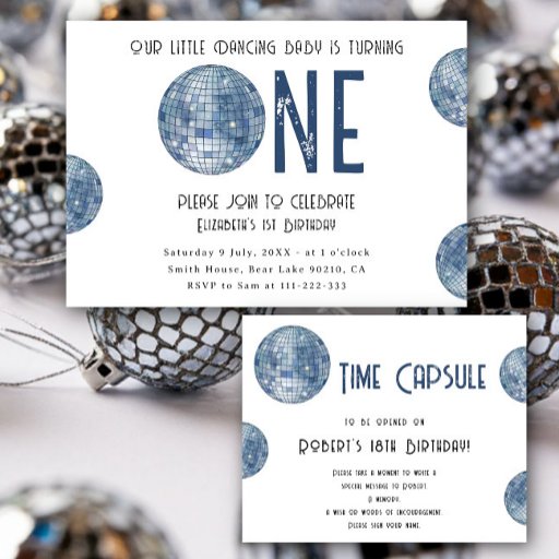 Tarjeta De Agradecimiento Retro Disco Ball First Birthday Party THANK YOU