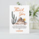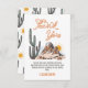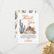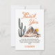 Tarjeta de agradecimiento de primer cumpleaños con tema vaquero para niño, que incluye un paisaje desértico con cactus, la palabra uno en estilo de cuerda y una herradura dibujada a mano. Ideal para una fiesta de cumpleaños con tema vaquero.