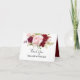 Esta tarjeta roja tropical y romántica de agradecimiento es perfecta para un boda rústico. El artístico diseño del marsala incluye acuarelas, rosas verdes, rosas, borgoñas y ruidosos, decorados con plantas verdes y cuidadosamente distribuidos en un elegante y radiante ramo de flores. Personalice la parte delantera de la tarjeta con los nombres de la novia y el novio o un mensaje corto. Estas tarjetas se pueden usar para un boda, una ducha de novia o cualquier evento especial.