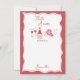 Un diseño único y hecho a mano de That's Amore que presenta ilustraciones de vino y pizza italianos tradicionales. Una hermosa invitación de despedida de soltera en rojo y blanco con un tema de pizza y vino italiano. Personaliza esta invitación de despedida de soltera con tema de pizza y vino y haz que sea tuya.