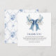 Tarjeta De Agradecimiento Romantic Dusty Blue Bow & Roses Wedding