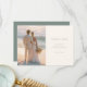 This wedding thank you card features a beautifully balanced layout with a romantic beach photograph on the left and elegant, minimalist text on the right. The color palette includes soft pastels and warm tones like pale pinks, creamy whites, and golden yellows, creating a serene and inviting atmosphere. The design combines a candid moment of a couple at sunset with refined typography in a simple serif font, conveying both elegance and heartfelt gratitude. Perfect for expressing thanks after a memorable celebration, this card captures the essence of love and togetherness.