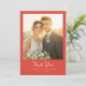This elegant wedding thank you card features a warm and romantic photo design, capturing the essence of celebration with soft golden hues. The layout is framed by a rich red border that complements the gentle tones of the photograph, creating an inviting and heartfelt atmosphere. The typography is stylish and sophisticated, adding to the overall charm of the design. Perfect for expressing gratitude after a special occasion, this card exudes warmth and appreciation, making it ideal for couples looking to share their joy with loved ones.