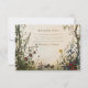 Este diseño de inspiración natural presenta delicadas flores silvestres y ramas botánicas dispuestas alrededor de un fondo de pergamino que evoca el encanto de un eterno jardín de bosques. Una elección perfecta para celebraciones rústicas, románticas o al aire libre. Personalízalo con tus nombres, fecha y detalles del lugar.