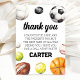 Easily personalize this sports birthday thank you card for your event! For matching items, please shop Inspire My Party's "It's Game Time Sports Birthday (14SP)" collection.