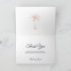 Gracias a sus invitados por ayudarle a celebrar su día especial con este diseño elegante y sencillo que presenta su foto con un guión moderno. Personalizar con tu foto y nombres en el frente junto con tu mensaje y nombres en el interior en texto azul marino junto con una artística palmera de cobre de oro rosa.