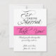 Tarjetas de agradecimiento de boda con acentos rosados para una fiesta de etiqueta negra titulada 'Comer, beber y estar casado'. Personalice con sus nombres e información de la boda. Elija el color de fondo y el estilo de papel. Diseño de Elke Clarke ©2011