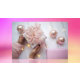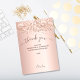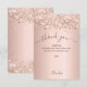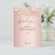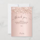 Un fondo de rosa oro, decorado con confeti. Gran letra script con florituras y el texto: Gracias. Personaliza y añade tu nota de agradecimiento y nombre.