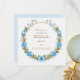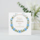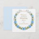 Una suave tarjeta de agradecimiento con acuarela con una corona de rosas azules polvorientas y aliento de bebé, perfecta para enviar gratitud sincera después de su despedida.
