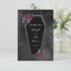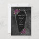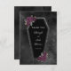 Oscuro y hermoso, este boda de ataúd gracias diseño es perfecto para un boda gótico o de Halloween. El ataúd tiene un brillo purpurina gris alrededor de los bordes y rosas púrpura con hojas de oro y verde gris. El fondo es una acuarela negra morena. Vea la coordinación de artículos en nuestra tienda, Enchanted Finch.