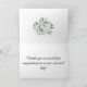 ¡Haga que su boda gracias sea realmente notable con esta vibrante tarjeta de agradecimiento! Flexible para cualquier uso, puede adornar las mesas de recepción o ser personalizado para un toque más íntimo. La tarjeta, que destaca entre la gente, cuenta con una vibrante base acuática con un toque de brillo metálico. Un sorprendente ramo de novias se sienta en la parte superior, con rosas blancas clásicas y un delicado respiro de bebé. En el interior, un gran ramo espera tu mensaje personalizado, o déjalo en blanco para un toque de elegancia sobria.
