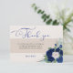 Tarjeta De Agradecimiento Rosas Royal Blue y Ivory caligrafía elegante