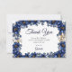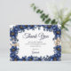 Tarjeta De Agradecimiento Royal Blue Golden Tiara Floral Quinceañera