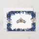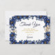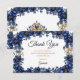 Tarjeta De Agradecimiento Royal Blue Golden Tiara Floral Quinceañera