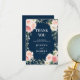 Tarjeta De Agradecimiento Rubor Naval Floral Dorado Geométrico Botánico Boda