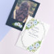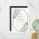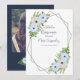 Rustic floral Quinceañera : Light blue and white floral with greenery foliage. Features navy blue and modern script typography. Photo template via Pixabay licensed under CC0 and must be replaced with your own photo.
