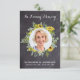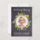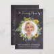 Modern Watercolor Sunflower Eucalyptus Sympathy Photo Funeral Thank You Cards. These sympathy funeral cards feature a unique photo template in sunflower and eucalyptus greenery wreath,, name and dates, on a rustic chalkboard slate design. Personalize back with your message of thanks. These memorial sympathy cards are perfect for funeral thank you cards, or celebration of life thank you cards. COPYRIGHT © 2020 Judy Burrows, Black Dog Art - All Rights Reserved. Rustic Sunflower Eucalyptus Photo Sympathy Funeral Thank You Card