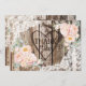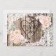 Madera rústica con encaje blanco y grabaciones de corazón y flores de ramo de peones gracias tarjeta.