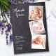Envíe notas de agradecimiento por su recién nacido a amigos y familiares con estas pizarra de pizarra rústica, tarjetas de presentación de fotos divertidas y modernas y tarjetas de agradecimiento para la ducha de bebé. Personalizar con 3 de tus fotos favoritas, y personaliza con nombre, fecha de nacimiento, estadísticas de nacimiento. DERECHOS RESERVADOS © 2020 Judy Burrows, Black Dog Art - Todos los derechos reservados. Tarjeta Rustic 3 Photo Recién nacido Chalkboard Shower