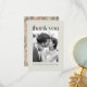 Tarjeta de agradecimiento rustica de bodas florales de color verde sabio y taúpe con foto