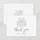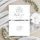 Unique hand drawn just married car and double heart couples monogram, with playful handwritten font in soft sage green, fun and elegant. Great personalized thank you cards for casual garden wedding, artistic boho beach wedding, and modern whimsical wedding.