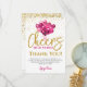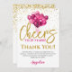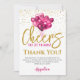 Una hermosa tarjeta de agradecimiento para una fiesta de cumpleaños número 21 'salud por 21 años'. Esta tarjeta fabulosa presenta globos en forma de corazón de color rosa intenso sobre un fondo de confeti dorado. Fácil de personalizar con tu propio mensaje de agradecimiento para la celebración de cumpleaños número veintiuno.