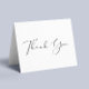 Una tarjeta de agradecimiento elegante y simple con "Gracias" en una escritura de caligrafía en la parte frontal. Agregue su mensaje de agradecimiento personalizado y firma en el interior o déjelo en blanco para un mensaje escrito a mano.