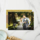 Una elegante tarjeta de agradecimiento de escritura blanca con tu foto, nombre y fecha especial boda favorita. Al revés tienes tu mensaje personalizado de agradecimiento y confetti de corazones de amor de oro dispersos. Diseñado por Thisisnotme©